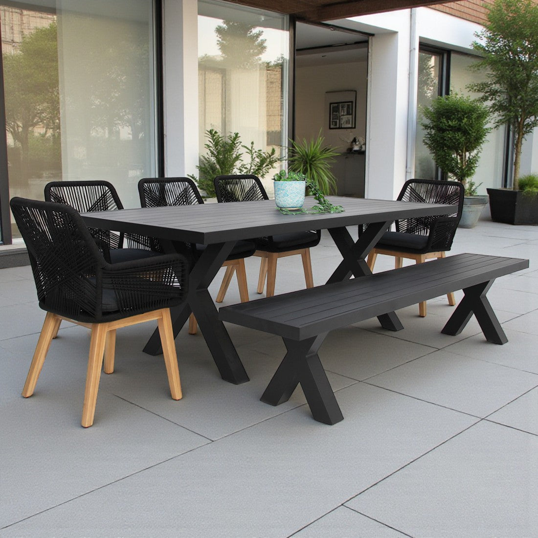 Ravenne Albenga 7pc Dining and Bench Setting - Black