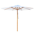 Enjoy sunny days under our 3 metre Byron Bay blue and white striped market umbrella. Complete with a heavy duty 280g polyester canopy and "timber look" powder coated aluminium frame this market umbrella will not only look good, but also provide efficient coverage, even on the largest of outdoor decks. Great for use in your backyard or in your commercial property.