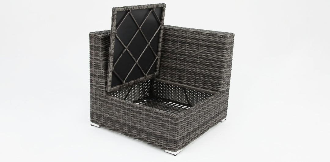 Entertain in style this season with our most popular collection β the Amani storage range. The built in storage is a practical inclusion allowing you to store the cushions when the set's not being used or store other bits and pieces. The base of both the corner chairs and centre chairs lift to reveal a deep, spacious storage spot.