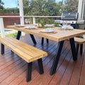 Complete with a large 220cm table and 2 x matching 170cm benches, the Bosco provides plenty of space to entertain, however when not in use, choose to slide the benches under the table to create an efficient, space saving solution.