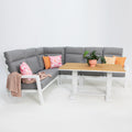 The aluminium frame has been powder coated in a fresh white which complements the light grey, weather resistant cushioning.