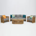 Acacia built, the Kava features a curved frame along with detailed cut outs on each of the chair backs and around the base of the coffee table. This gorgeous detail adds modern charm to this already contemporary set.
