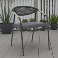 A beautifully, well thought out chair, the Octavia comes complete with rope detailing on the upper half of the chair, timber look, polywood panels on each of the chair arms and a dark grey coloured, padded base cushion for extra comfort and support.