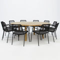 Meet our large and exclusive, Oscar-Bahamas 11 piece timber dining set. Complete with the Oscar round dining table and ten Bahamas dining chairs, in either olive or black, this set is a must for those who love to entertain.