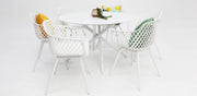 Beautifully designed, with its circular shape and modern, angled legs, the Persia dining table is a must have item this season! Measuring 120cm in diameter, the Persia is large enough to fit up to 6 chairs around it, making it the ideal entertaining piece. Available in white and built from a powder coated aluminium; the Persia is a stress free, low maintenance table perfect for those wanting the joy of outdoor furniture without the hassle of maintaining it. To maintain the Persia, simply hose down and wipe dry with a clean cloth - it's as simple as that! Light in weight, the Persia can be easily moved around your outdoor space depending on the look you're after.