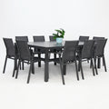 For a low maintenance, contemporary outdoor dining set you can't go past the Queensville Deluxe 11 piece. Complete with a large 200cm rectangular table and ten matching dining chairs the Queensville is an entertainers delight.