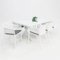 The eight accompanying white Bailey chairs have been built using resin and complement the Ravenne table perfectly. They also come complete with a grey base cushion for added comfort and support. They have a weight capacity of 110 kilograms and are able to be stacked for easy storage.
