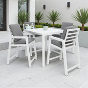 Outdoor dining tables made from powder-coated aluminium or tempered glass for heat and weather resistance